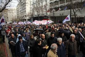 Η εργατική τάξη της χώρας σήμερα απεργεί και διαδηλώνει ενάντια στις νέες μειώσεις στους ήδη μειωμένους μισθούς, στις συντάξεις και στα εφάπαξ, ενάντια στις ατομικές συμβάσεις. Απαιτούν αύξηση του επιδόματος ανεργίας, αποκλειστικά δημόσια - δωρεάν Υγεία και Παιδεία, να σταματήσουν όλα τα χαράτσια, κάθε κατάσχεση και πλειστηριασμός στα σπίτια του εργαζόμενου λαού. Εκφράζουν την αντίθεσή τους στην απελευθέρωση των απολύσεων, στις ιδιωτικοποιήσεις, στη νέα φοροεπιδρομή που προβλέπει ο νέος προϋπολογισμός, στην απελευθέρωση του ωραρίου, στην κατάργηση της Κυριακής-αργίας. Από αύριο κιόλας τα συνδικάτα, τα σωματεία σε κάθε χώρο δουλειάς πρέπει να συζητήσουν και να οργανώσουν τον αγώνα τους για τη συνέχιση της πάλης ενάντια στην αντιλαϊκή πολιτική.