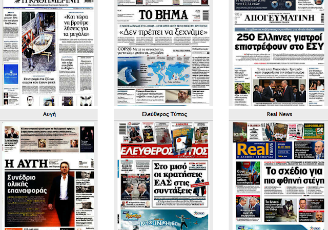 ..δείτε τα πρωτοσέλιδα των εφημερίδων σήμερα Κυριακή 10 Δεκεμβρίου ,πατώντας εδώ
