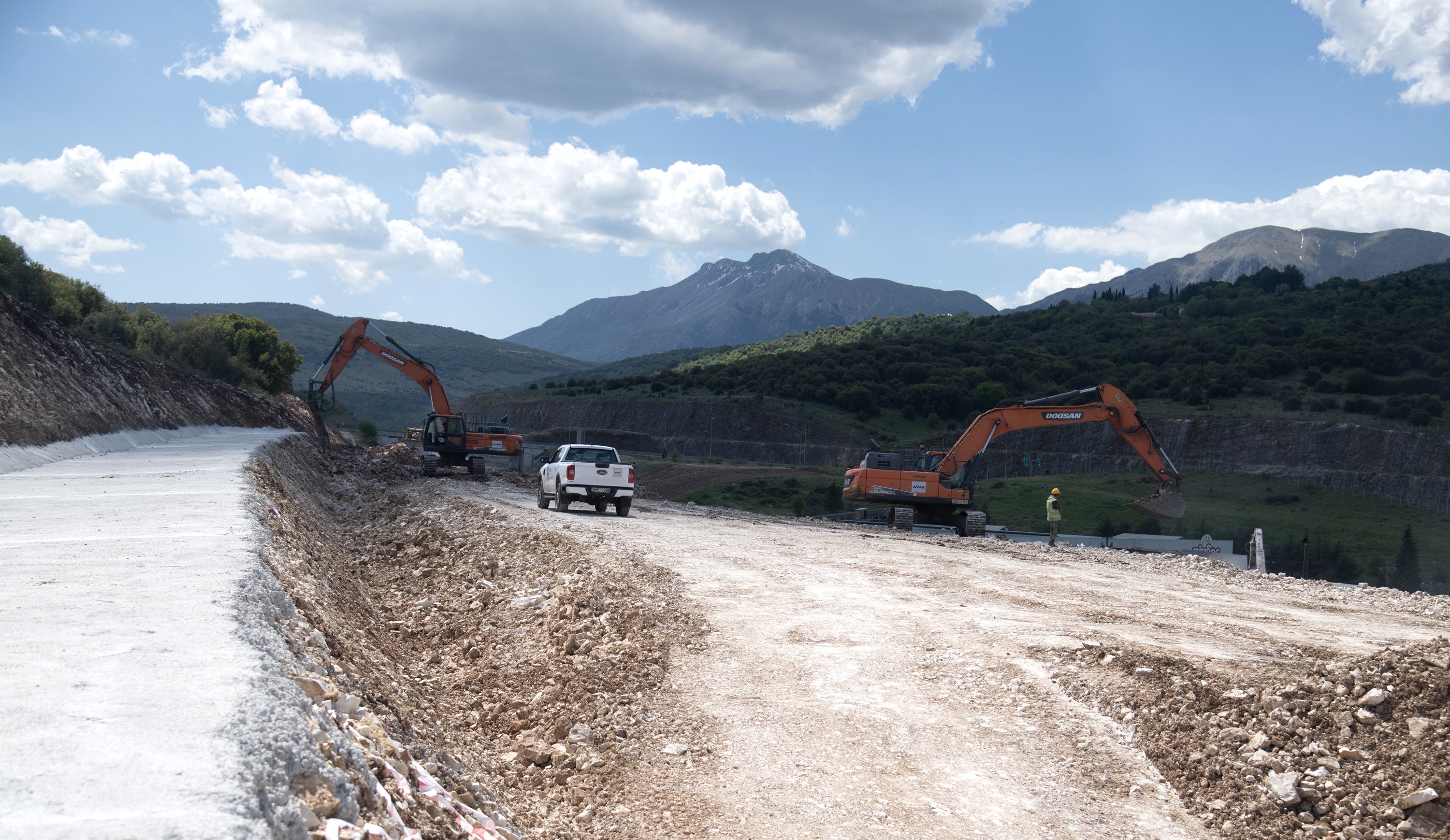 Αυτή τη στιγμή οι εργασίες βρίσκονται σε πλήρη εξέλιξη σε τρία σημεία: Στην Κοσμηρά, στο Ασβεστοχώρι και στο σημείο ένωσης με τους αυτοκινητοδρόμους της Ιόνιας και της Εγνατίας Οδού. Ο κ. Καντιανής κατά την ξενάγηση ενημέρωσε εκτενώς για την πορεία των εργασιών, τα τεχνικά χαρακτηριστικά του έργου, τα χρονοδιαγράμματα κ.ά.